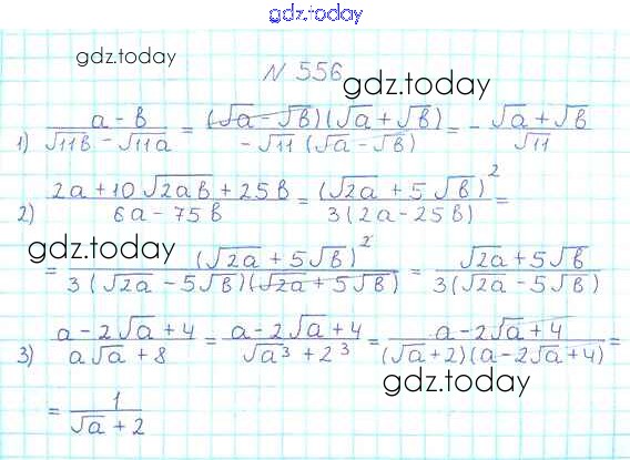 На страницах сайта gdz.today вы найдете учебный и вспомогательный материал, направленный на улучшения знаний школьной программы. ГДЗ - онлайн мир знаний §17. Тождественные преобразования выражений, содержащих арифметические квадратные корни Решение к главе 2. Квадратные корни. Действительные числа 556 Учебнику по Алгебре для 8 класса Мерзляк, Полонский Вентана-граф Алгоритм успеха 2016