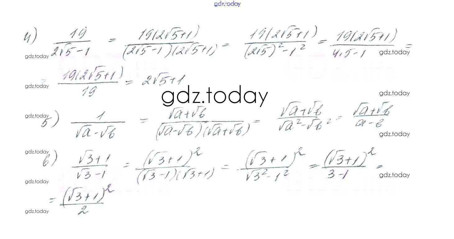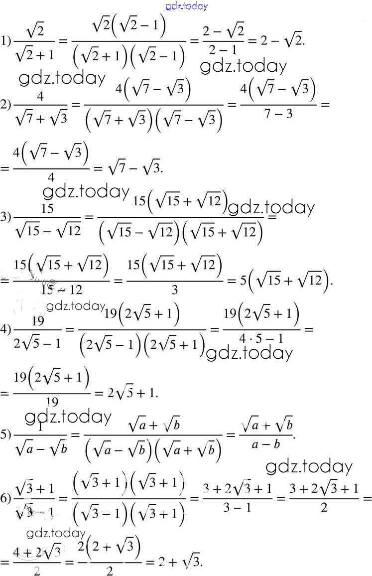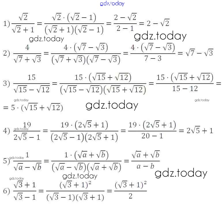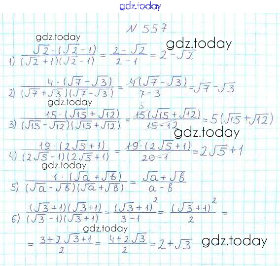 На страницах сайта gdz.today вы найдете учебный и вспомогательный материал, направленный на улучшения знаний школьной программы. ГДЗ - онлайн мир знаний §17. Тождественные преобразования выражений, содержащих арифметические квадратные корни Решение к главе 2. Квадратные корни. Действительные числа 557 Учебнику по Алгебре для 8 класса Мерзляк, Полонский Вентана-граф Алгоритм успеха 2016