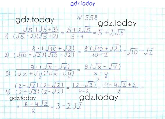Ответы к §17. Тождественные преобразования выражений, содержащих арифметические квадратные корни Решение к главе 2. Квадратные корни. Действительные числа 558 Учебнику по Алгебре для 8 класса Мерзляк, Полонский Вентана-граф Алгоритм успеха 2016