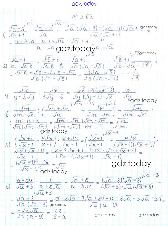 На страницах сайта gdz.today вы найдете учебный и вспомогательный материал, направленный на улучшения знаний школьной программы. ГДЗ - онлайн мир знаний §17. Тождественные преобразования выражений, содержащих арифметические квадратные корни Решение к главе 2. Квадратные корни. Действительные числа 562 Учебнику по Алгебре для 8 класса Мерзляк, Полонский Вентана-граф Алгоритм успеха 2016