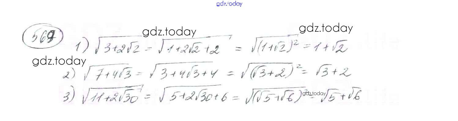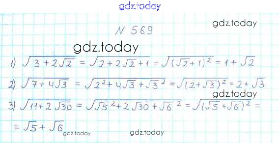 На страницах сайта gdz.today вы найдете учебный и вспомогательный материал, направленный на улучшения знаний школьной программы. ГДЗ - онлайн мир знаний §17. Тождественные преобразования выражений, содержащих арифметические квадратные корни Решение к главе 2. Квадратные корни. Действительные числа 569 Учебнику по Алгебре для 8 класса Мерзляк, Полонский Вентана-граф Алгоритм успеха 2016