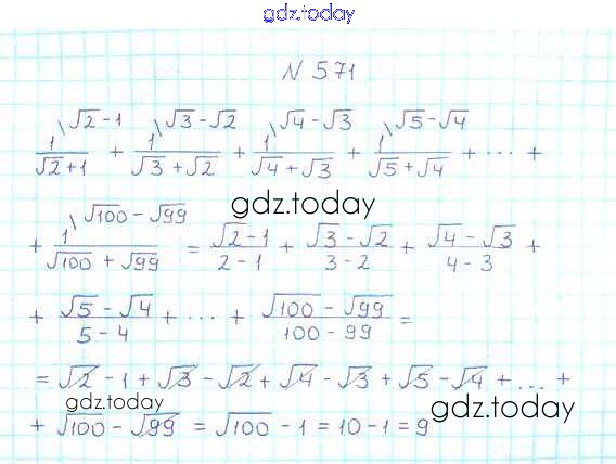 На страницах сайта gdz.today вы найдете учебный и вспомогательный материал, направленный на улучшения знаний школьной программы. ГДЗ - онлайн мир знаний §17. Тождественные преобразования выражений, содержащих арифметические квадратные корни Решение к главе 2. Квадратные корни. Действительные числа 571 Учебнику по Алгебре для 8 класса Мерзляк, Полонский Вентана-граф Алгоритм успеха 2016