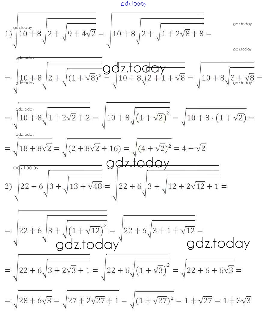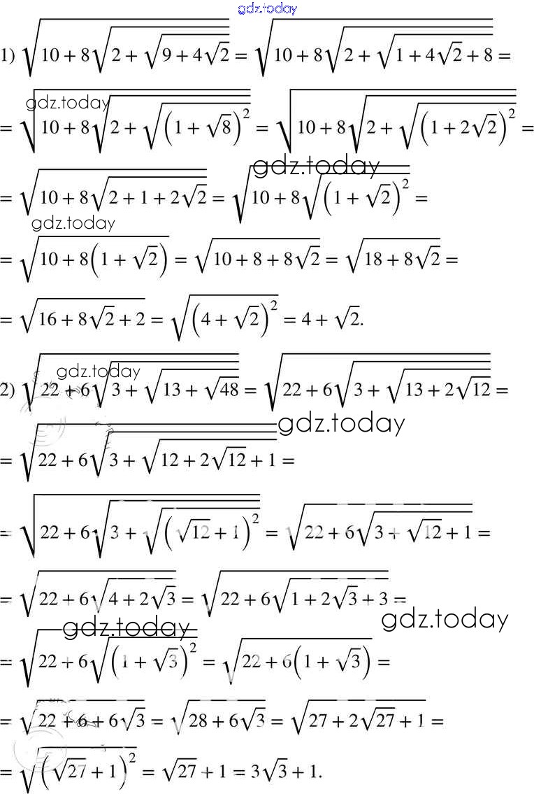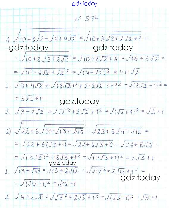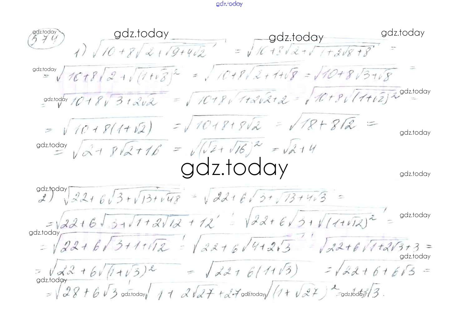 На страницах сайта gdz.today вы найдете учебный и вспомогательный материал, направленный на улучшения знаний школьной программы. ГДЗ - онлайн мир знаний §17. Тождественные преобразования выражений, содержащих арифметические квадратные корни Решение к главе 2. Квадратные корни. Действительные числа 574 Учебнику по Алгебре для 8 класса Мерзляк, Полонский Вентана-граф Алгоритм успеха 2016