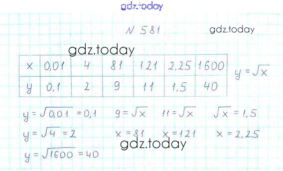 Ответы к §18. Функция y=√x Решение к главе 2. Квадратные корни. Действительные числа 581 Учебнику по Алгебре для 8 класса Мерзляк, Полонский Вентана-граф Алгоритм успеха 2016