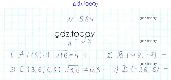 На страницах сайта gdz.today вы найдете учебный и вспомогательный материал, направленный на улучшения знаний школьной программы. ГДЗ - онлайн мир знаний §18. Функция y=√x Решение к главе 2. Квадратные корни. Действительные числа 584 Учебнику по Алгебре для 8 класса Мерзляк, Полонский Вентана-граф Алгоритм успеха 2016
