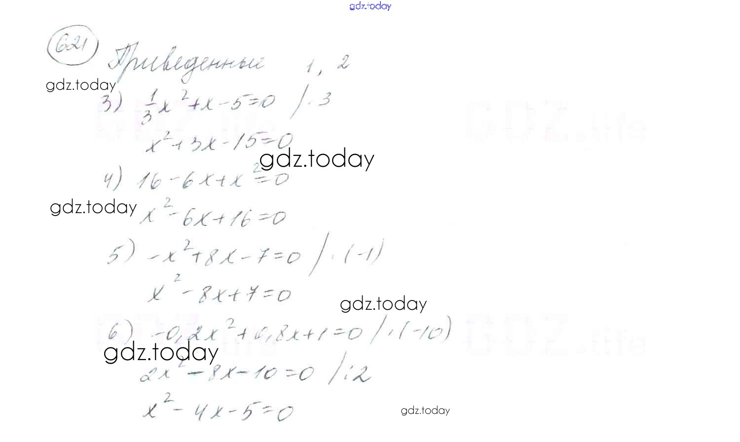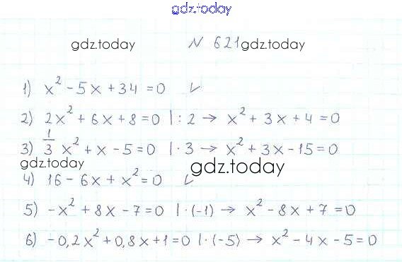Ответы к §19. Квадратные уравнения. Решение неполных квадратных уравнений Решение к главе 3. Квадратные уравнения 621 Учебнику по Алгебре для 8 класса Мерзляк, Полонский Вентана-граф Алгоритм успеха 2016