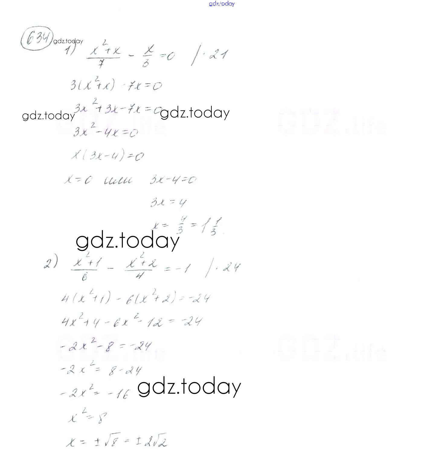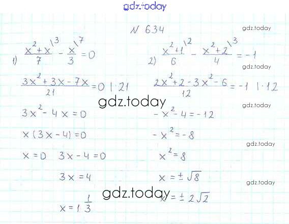 На страницах сайта gdz.today вы найдете учебный и вспомогательный материал, направленный на улучшения знаний школьной программы. ГДЗ - онлайн мир знаний §19. Квадратные уравнения. Решение неполных квадратных уравнений Решение к главе 3. Квадратные уравнения 634 Учебнику по Алгебре для 8 класса Мерзляк, Полонский Вентана-граф Алгоритм успеха 2016
