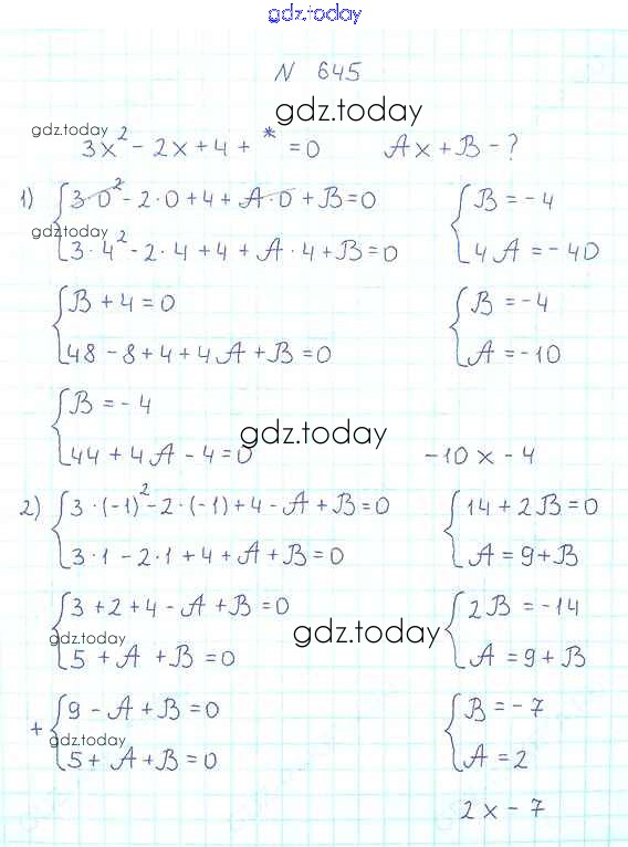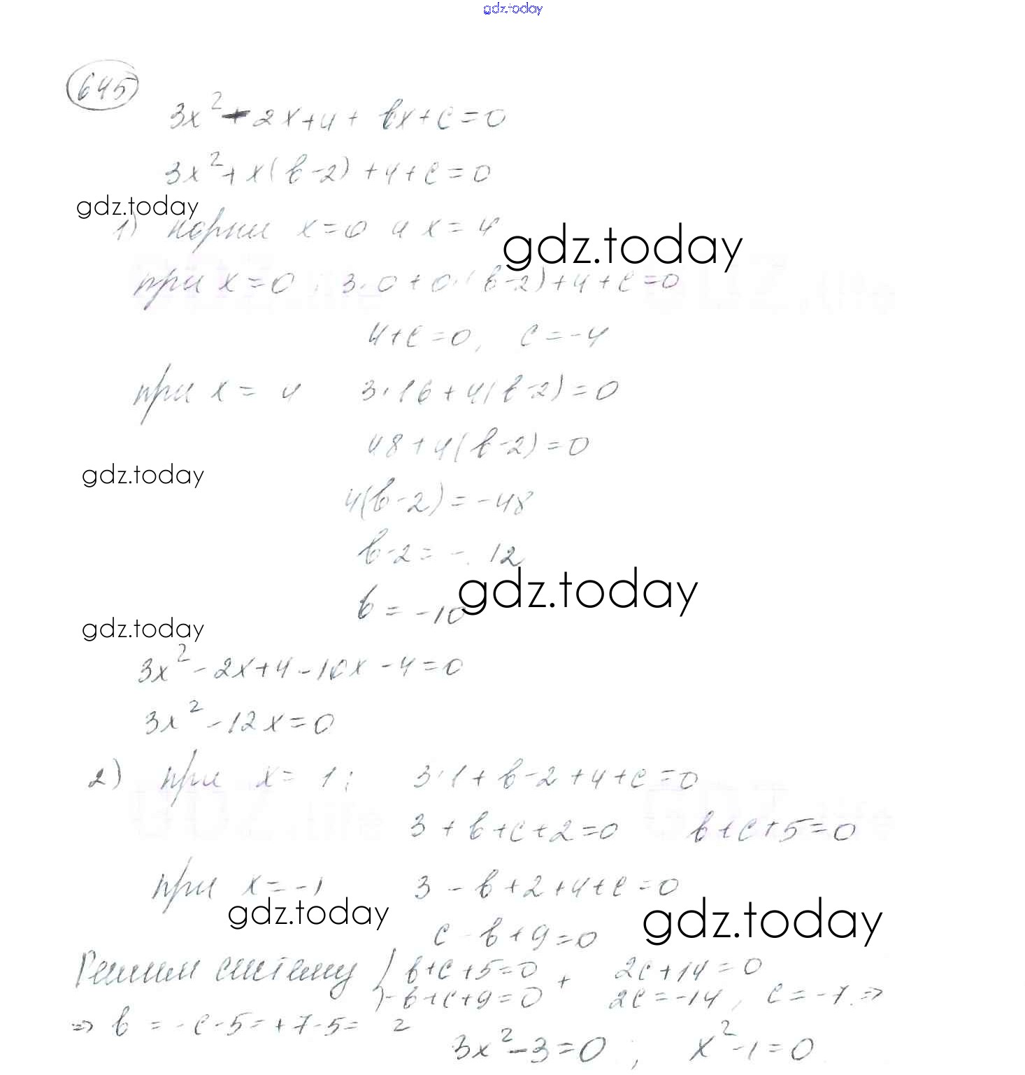 На страницах сайта gdz.today вы найдете учебный и вспомогательный материал, направленный на улучшения знаний школьной программы. ГДЗ - онлайн мир знаний §19. Квадратные уравнения. Решение неполных квадратных уравнений Решение к главе 3. Квадратные уравнения 645 Учебнику по Алгебре для 8 класса Мерзляк, Полонский Вентана-граф Алгоритм успеха 2016