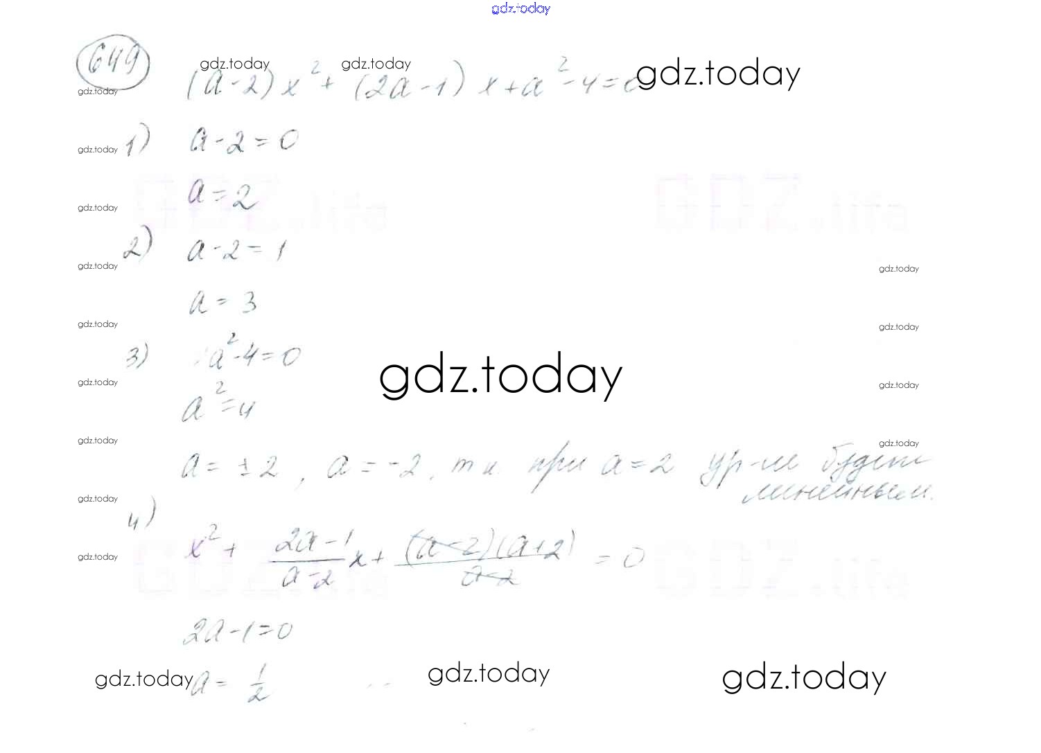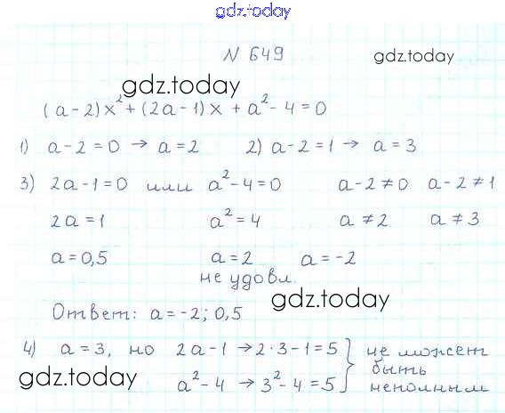 На страницах сайта gdz.today вы найдете учебный и вспомогательный материал, направленный на улучшения знаний школьной программы. ГДЗ - онлайн мир знаний §19. Квадратные уравнения. Решение неполных квадратных уравнений Решение к главе 3. Квадратные уравнения 649 Учебнику по Алгебре для 8 класса Мерзляк, Полонский Вентана-граф Алгоритм успеха 2016