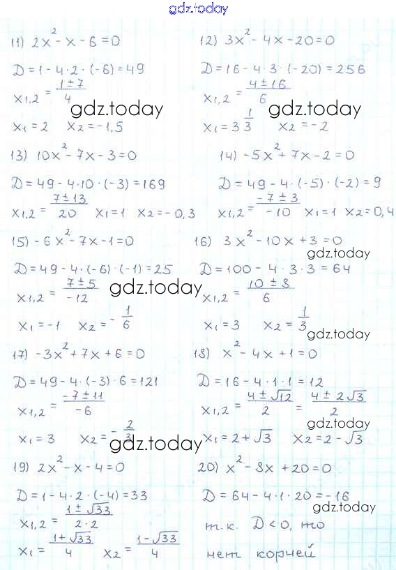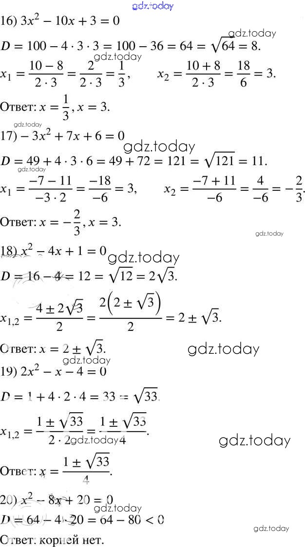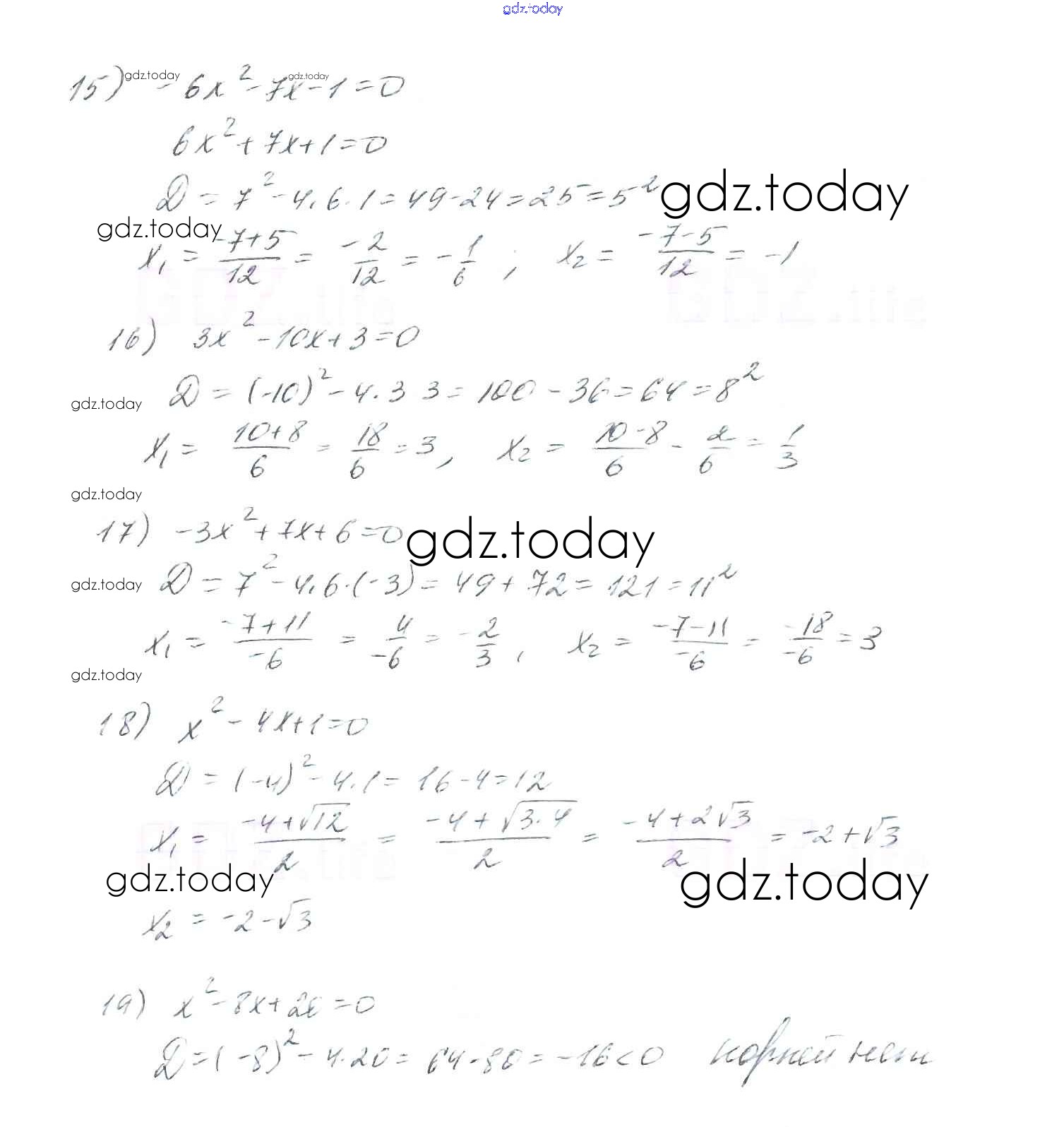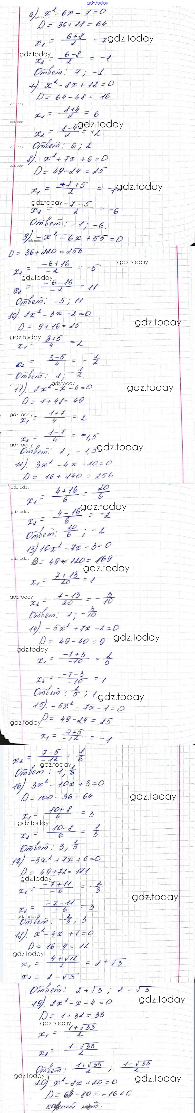 На страницах сайта gdz.today вы найдете учебный и вспомогательный материал, направленный на улучшения знаний школьной программы. ГДЗ - онлайн мир знаний §20. Формула корней квадратного уравнения Решение к главе 3. Квадратные уравнения 659 Учебнику по Алгебре для 8 класса Мерзляк, Полонский Вентана-граф Алгоритм успеха 2016