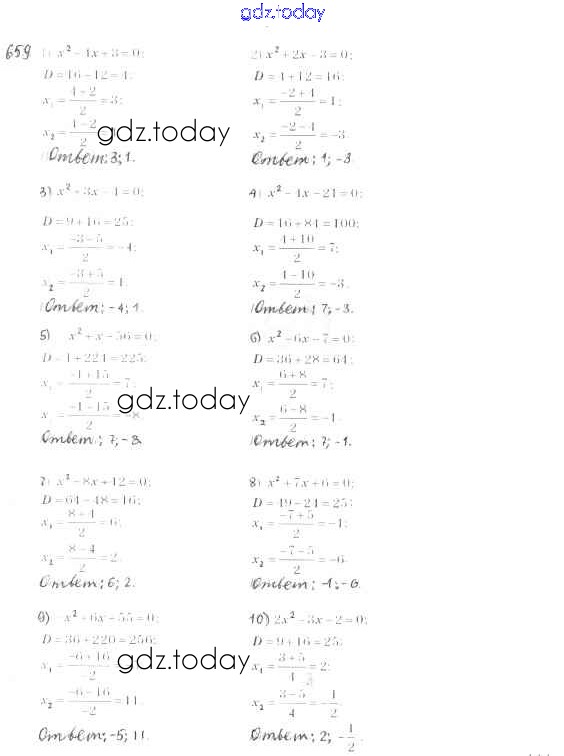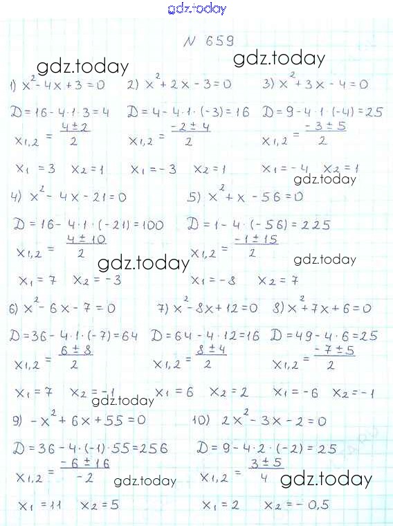 Ответы к §20. Формула корней квадратного уравнения Решение к главе 3. Квадратные уравнения 659 Учебнику по Алгебре для 8 класса Мерзляк, Полонский Вентана-граф Алгоритм успеха 2016