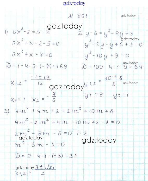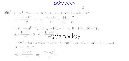 Ответы к §20. Формула корней квадратного уравнения Решение к главе 3. Квадратные уравнения 661 Учебнику по Алгебре для 8 класса Мерзляк, Полонский Вентана-граф Алгоритм успеха 2016