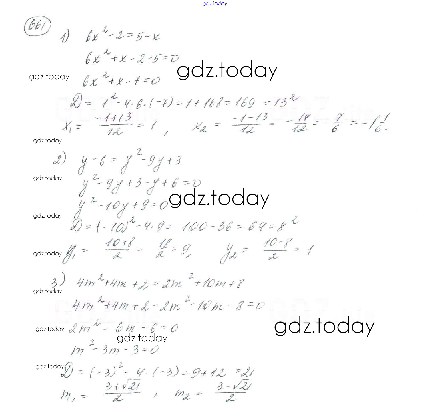 На страницах сайта gdz.today вы найдете учебный и вспомогательный материал, направленный на улучшения знаний школьной программы. ГДЗ - онлайн мир знаний §20. Формула корней квадратного уравнения Решение к главе 3. Квадратные уравнения 661 Учебнику по Алгебре для 8 класса Мерзляк, Полонский Вентана-граф Алгоритм успеха 2016