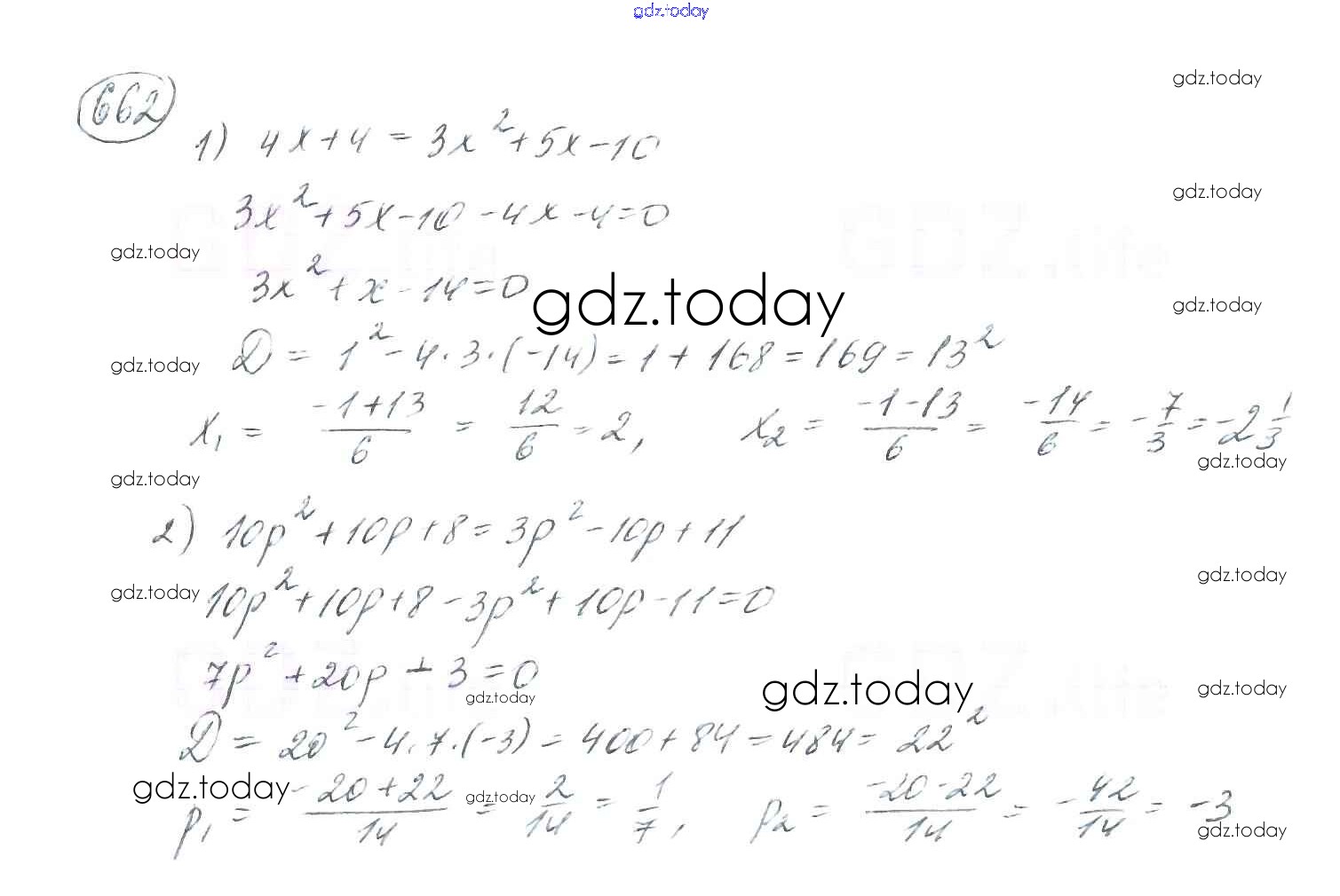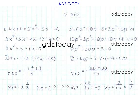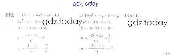 Ответы к §20. Формула корней квадратного уравнения Решение к главе 3. Квадратные уравнения 662 Учебнику по Алгебре для 8 класса Мерзляк, Полонский Вентана-граф Алгоритм успеха 2016