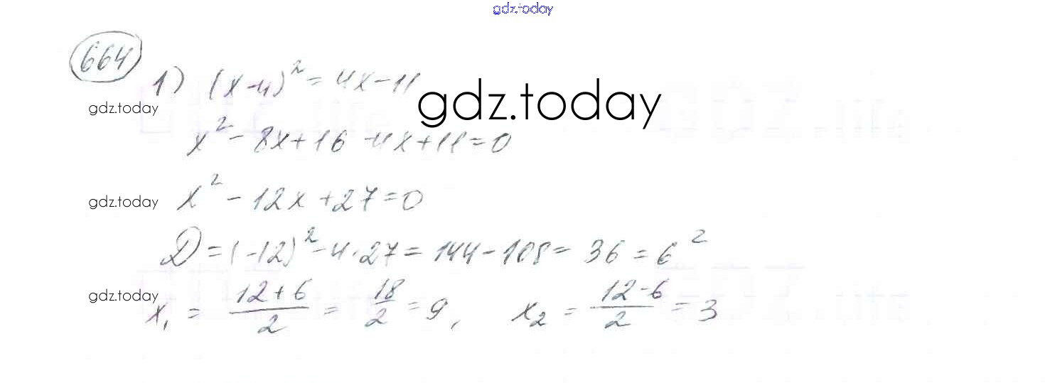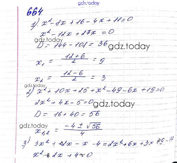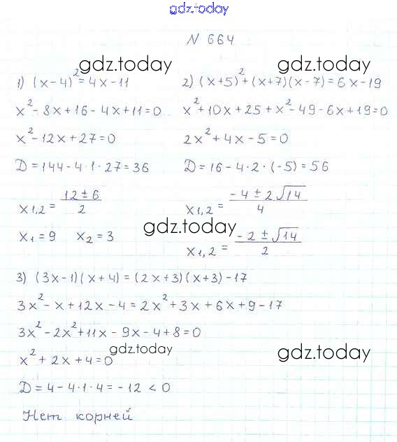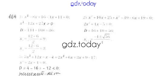 Ответы к §20. Формула корней квадратного уравнения Решение к главе 3. Квадратные уравнения 664 Учебнику по Алгебре для 8 класса Мерзляк, Полонский Вентана-граф Алгоритм успеха 2016