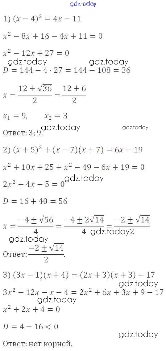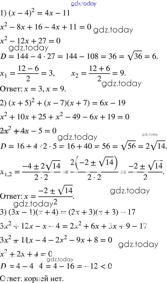 На страницах сайта gdz.today вы найдете учебный и вспомогательный материал, направленный на улучшения знаний школьной программы. ГДЗ - онлайн мир знаний §20. Формула корней квадратного уравнения Решение к главе 3. Квадратные уравнения 664 Учебнику по Алгебре для 8 класса Мерзляк, Полонский Вентана-граф Алгоритм успеха 2016