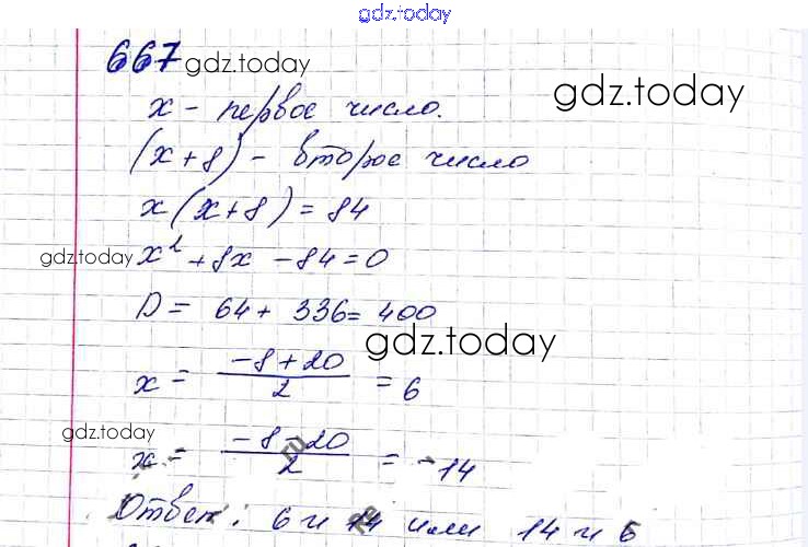 Ответы к §20. Формула корней квадратного уравнения Решение к главе 3. Квадратные уравнения 667 Учебнику по Алгебре для 8 класса Мерзляк, Полонский Вентана-граф Алгоритм успеха 2016