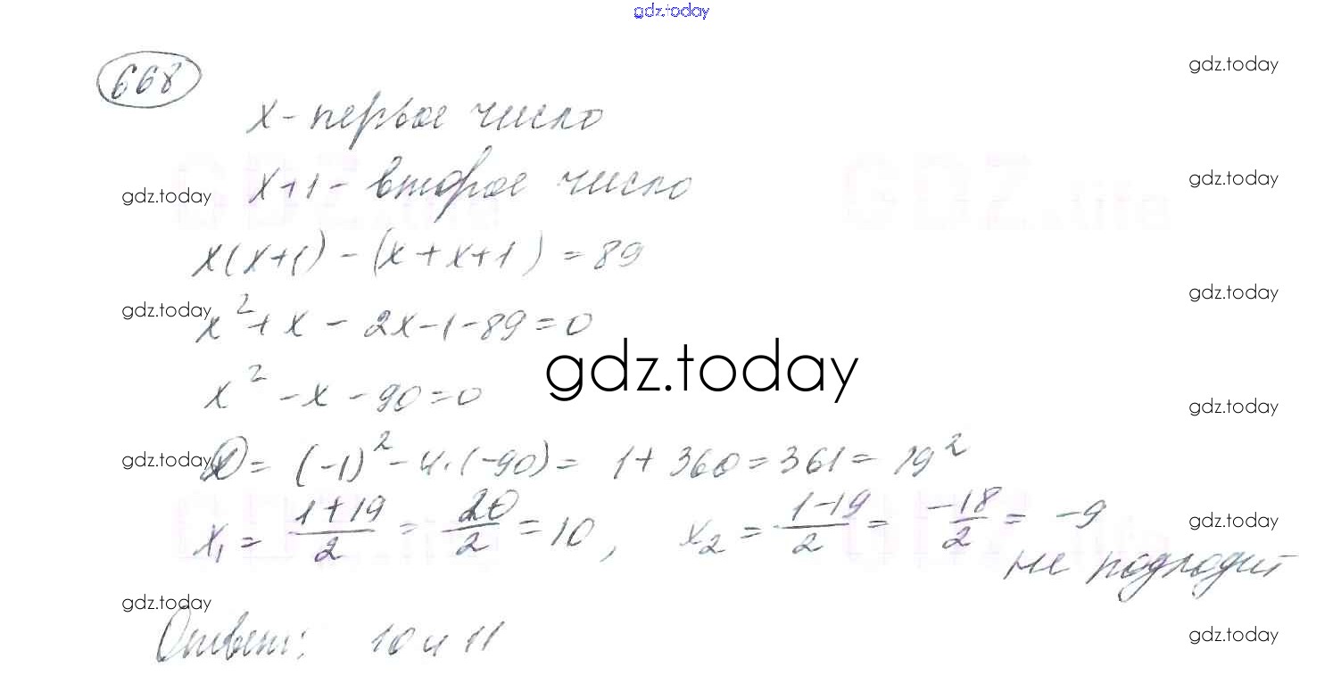 Ответы к §20. Формула корней квадратного уравнения Решение к главе 3. Квадратные уравнения 668 Учебнику по Алгебре для 8 класса Мерзляк, Полонский Вентана-граф Алгоритм успеха 2016