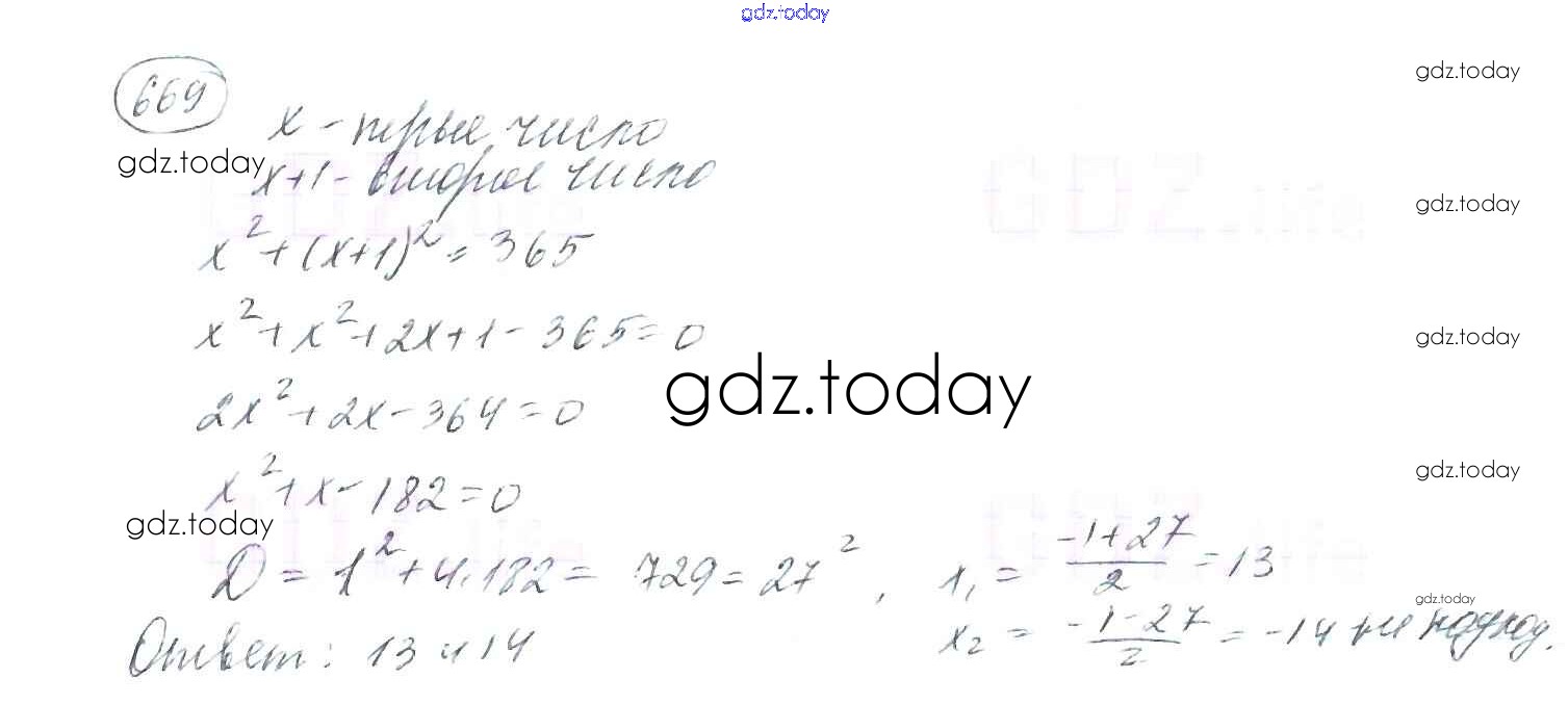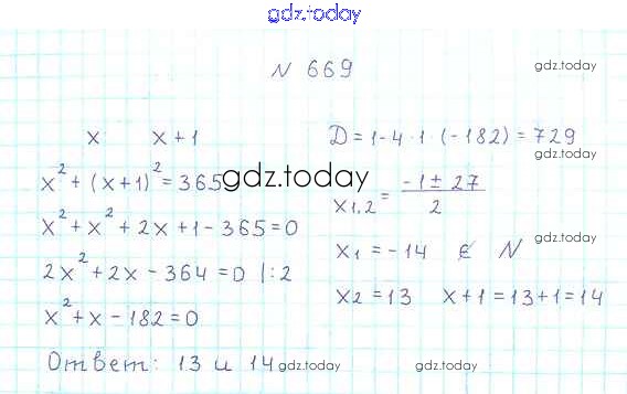 На страницах сайта gdz.today вы найдете учебный и вспомогательный материал, направленный на улучшения знаний школьной программы. ГДЗ - онлайн мир знаний §20. Формула корней квадратного уравнения Решение к главе 3. Квадратные уравнения 669 Учебнику по Алгебре для 8 класса Мерзляк, Полонский Вентана-граф Алгоритм успеха 2016