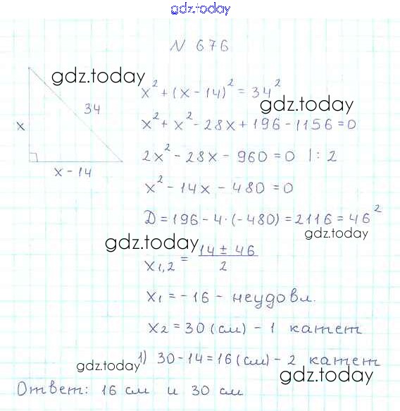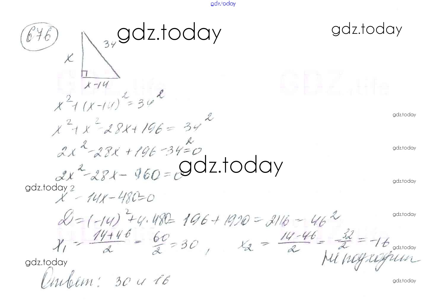 Ответы к §20. Формула корней квадратного уравнения Решение к главе 3. Квадратные уравнения 676 Учебнику по Алгебре для 8 класса Мерзляк, Полонский Вентана-граф Алгоритм успеха 2016