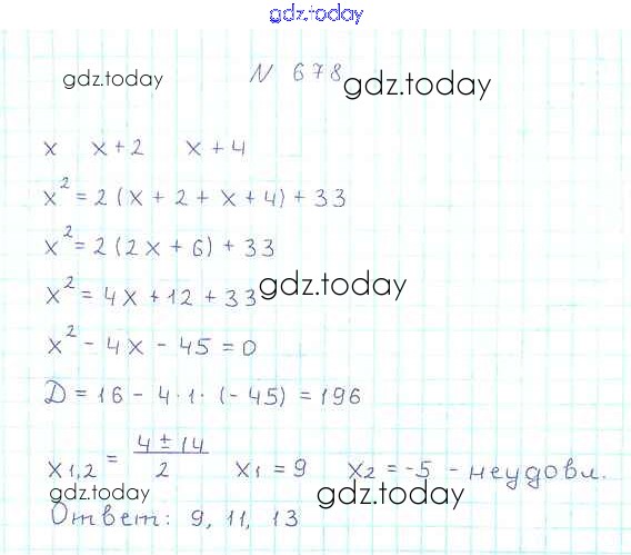 Ответы к §20. Формула корней квадратного уравнения Решение к главе 3. Квадратные уравнения 678 Учебнику по Алгебре для 8 класса Мерзляк, Полонский Вентана-граф Алгоритм успеха 2016