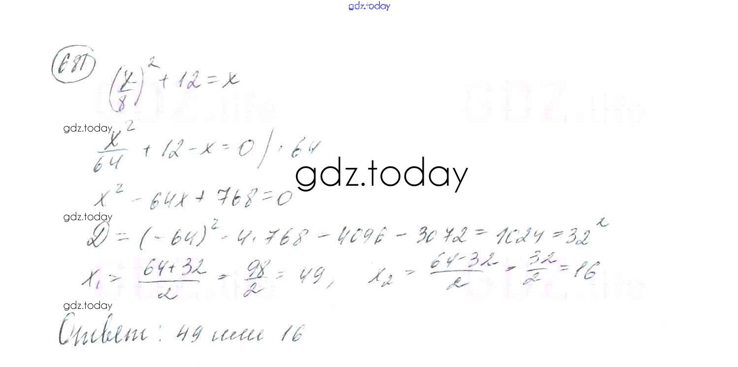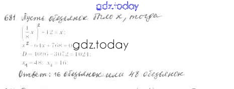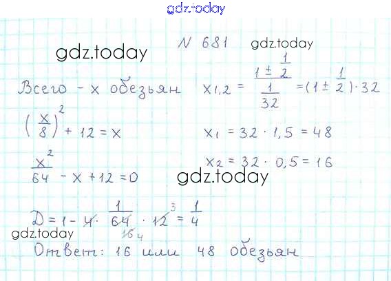 Ответы к §20. Формула корней квадратного уравнения Решение к главе 3. Квадратные уравнения 681 Учебнику по Алгебре для 8 класса Мерзляк, Полонский Вентана-граф Алгоритм успеха 2016