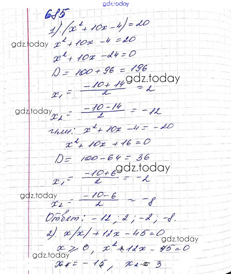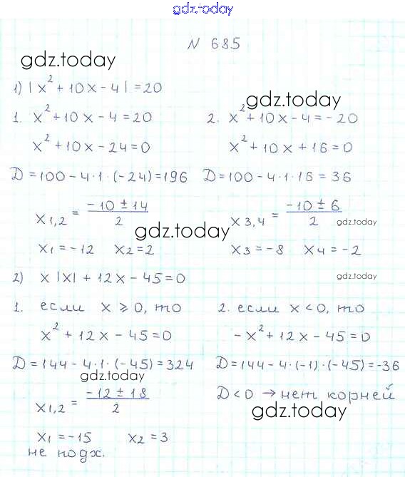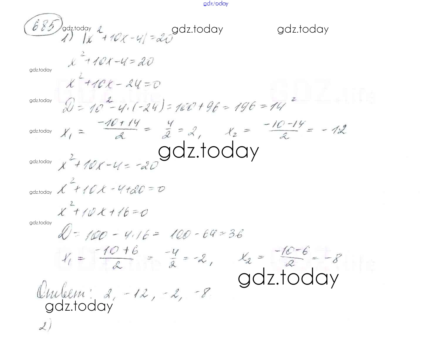 Ответы к §20. Формула корней квадратного уравнения Решение к главе 3. Квадратные уравнения 685 Учебнику по Алгебре для 8 класса Мерзляк, Полонский Вентана-граф Алгоритм успеха 2016