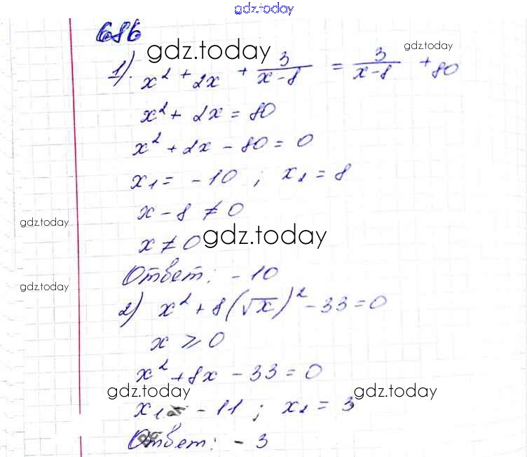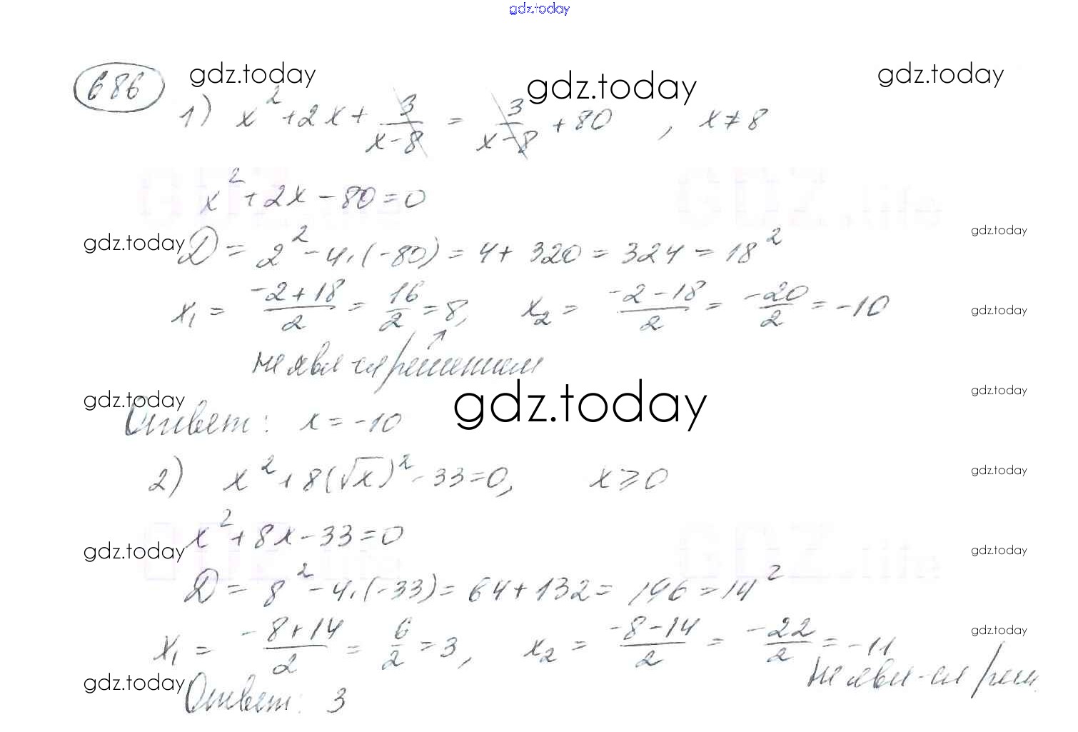 Ответы к §20. Формула корней квадратного уравнения Решение к главе 3. Квадратные уравнения 686 Учебнику по Алгебре для 8 класса Мерзляк, Полонский Вентана-граф Алгоритм успеха 2016