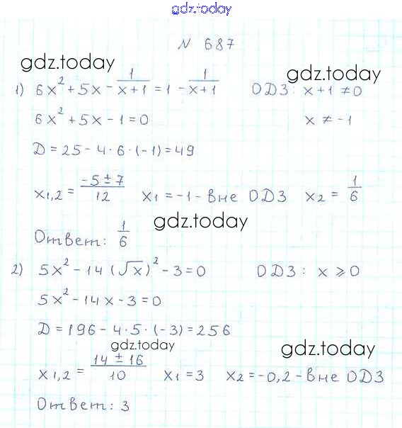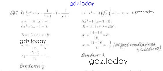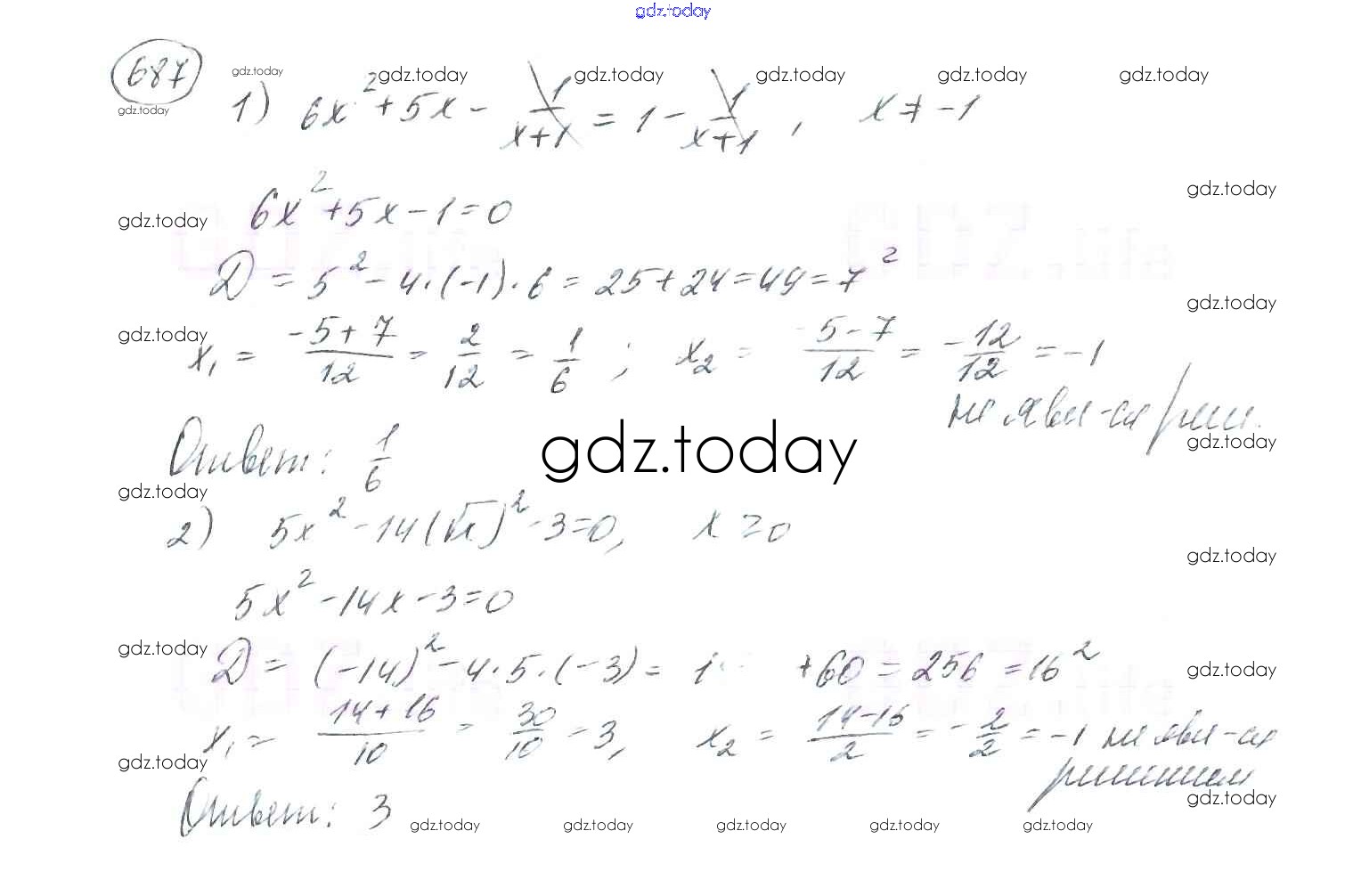 Ответы к §20. Формула корней квадратного уравнения Решение к главе 3. Квадратные уравнения 687 Учебнику по Алгебре для 8 класса Мерзляк, Полонский Вентана-граф Алгоритм успеха 2016