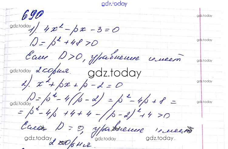 Ответы к §20. Формула корней квадратного уравнения Решение к главе 3. Квадратные уравнения 690 Учебнику по Алгебре для 8 класса Мерзляк, Полонский Вентана-граф Алгоритм успеха 2016
