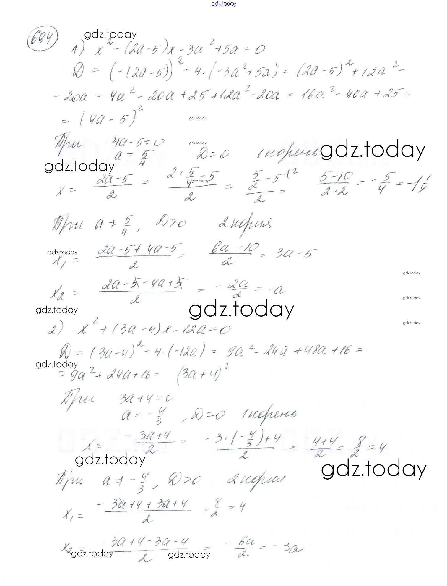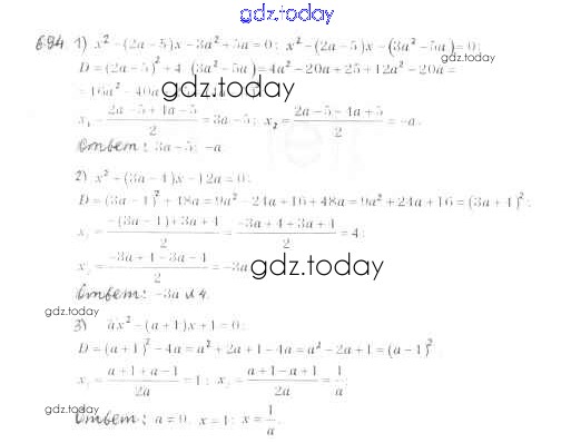 Ответы к §20. Формула корней квадратного уравнения Решение к главе 3. Квадратные уравнения 694 Учебнику по Алгебре для 8 класса Мерзляк, Полонский Вентана-граф Алгоритм успеха 2016
