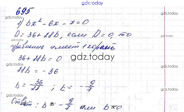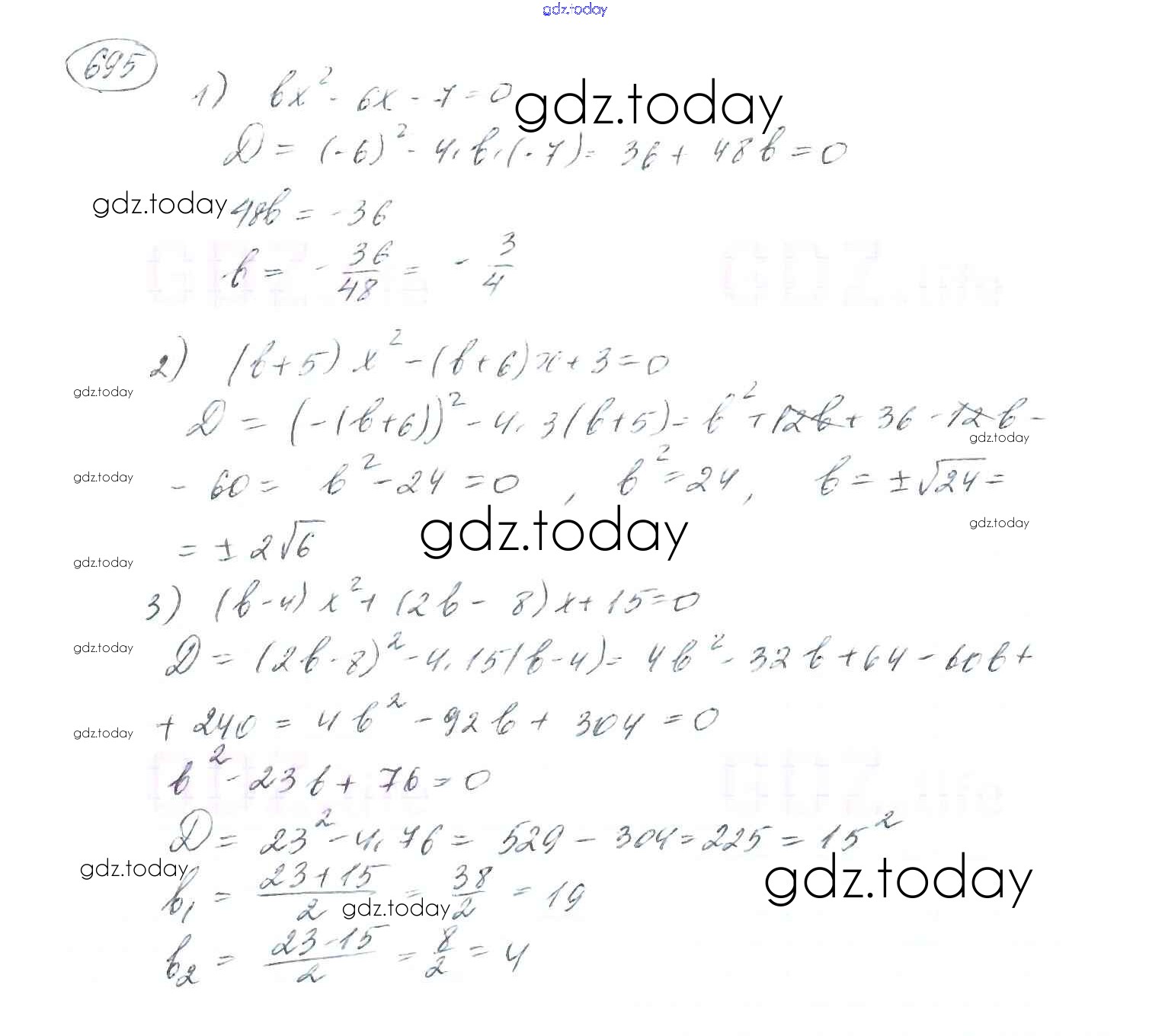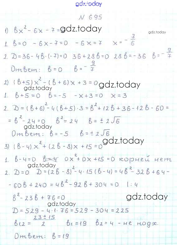 Ответы к §20. Формула корней квадратного уравнения Решение к главе 3. Квадратные уравнения 695 Учебнику по Алгебре для 8 класса Мерзляк, Полонский Вентана-граф Алгоритм успеха 2016