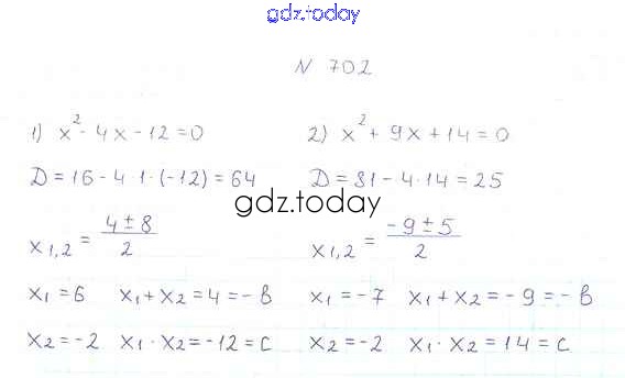 На страницах сайта gdz.today вы найдете учебный и вспомогательный материал, направленный на улучшения знаний школьной программы. ГДЗ - онлайн мир знаний §20. Формула корней квадратного уравнения Решение к главе 3. Квадратные уравнения 702 Учебнику по Алгебре для 8 класса Мерзляк, Полонский Вентана-граф Алгоритм успеха 2016