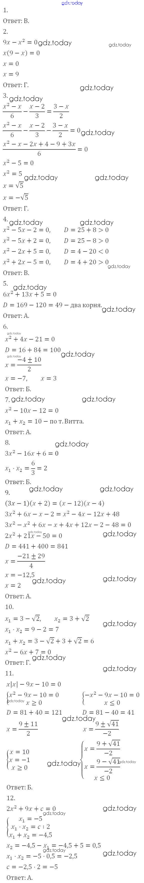 Ответы к Проверь себя №5 Решение к главе 3. Квадратные уравнения 1 Учебнику по Алгебре для 8 класса Мерзляк, Полонский Вентана-граф Алгоритм успеха 2016