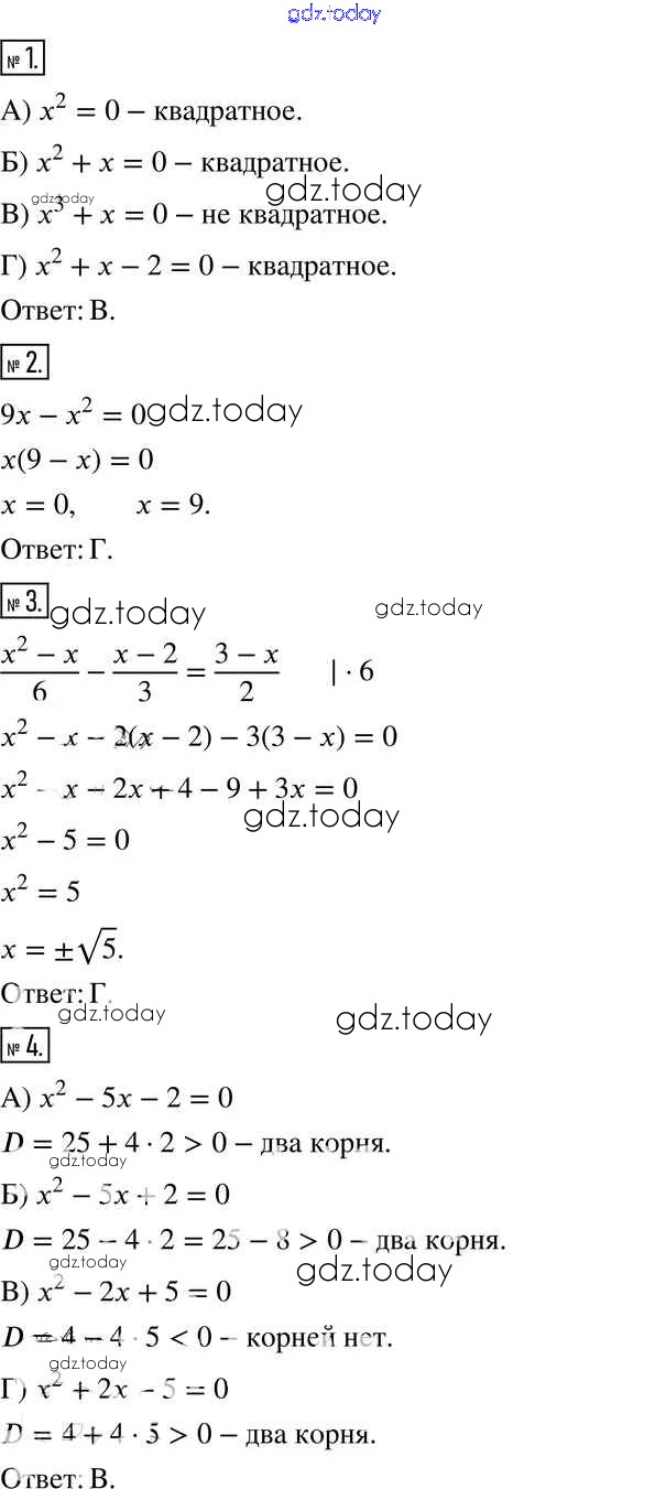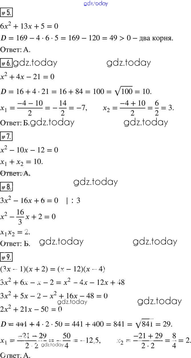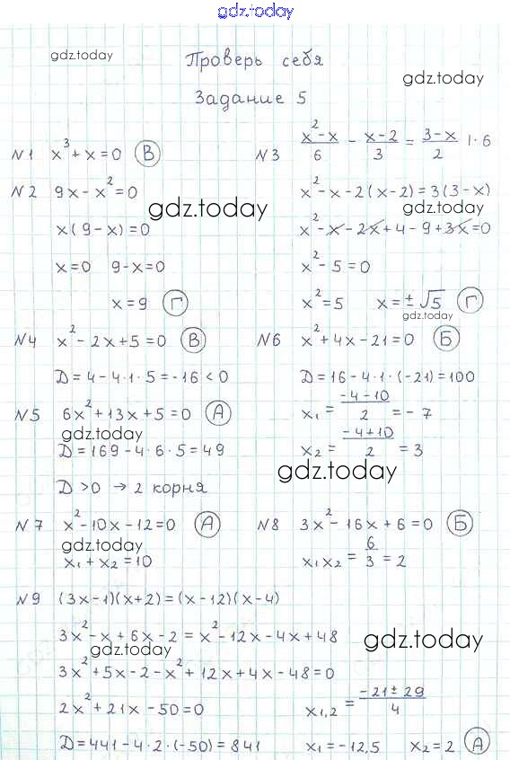 На страницах сайта gdz.today вы найдете учебный и вспомогательный материал, направленный на улучшения знаний школьной программы. ГДЗ - онлайн мир знаний Проверь себя №5 Решение к главе 3. Квадратные уравнения 1 Учебнику по Алгебре для 8 класса Мерзляк, Полонский Вентана-граф Алгоритм успеха 2016