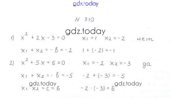 На страницах сайта gdz.today вы найдете учебный и вспомогательный материал, направленный на улучшения знаний школьной программы. ГДЗ - онлайн мир знаний §21. Теорема Виета Решение к главе 3. Квадратные уравнения 710 Учебнику по Алгебре для 8 класса Мерзляк, Полонский Вентана-граф Алгоритм успеха 2016