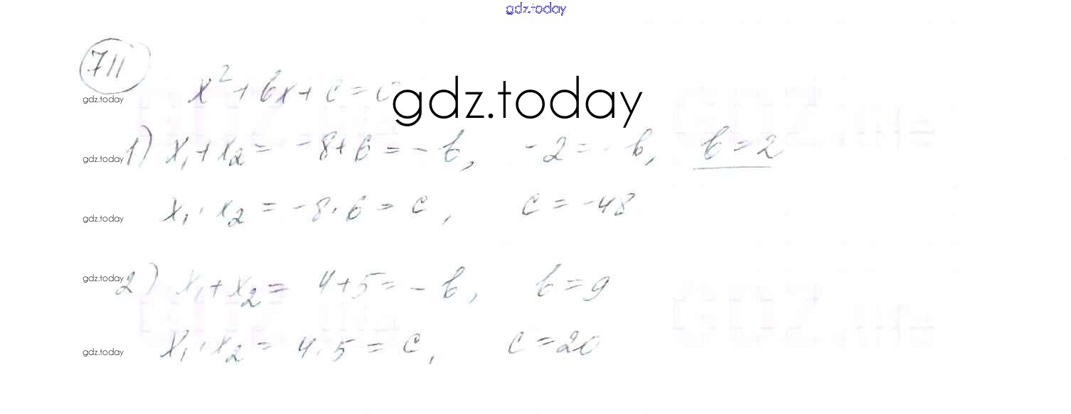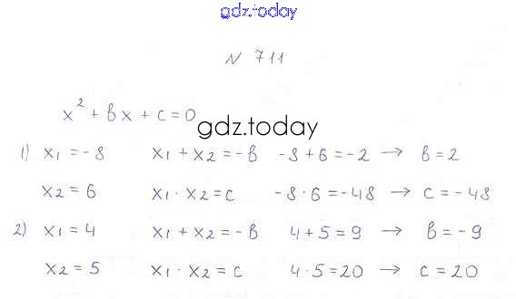На страницах сайта gdz.today вы найдете учебный и вспомогательный материал, направленный на улучшения знаний школьной программы. ГДЗ - онлайн мир знаний §21. Теорема Виета Решение к главе 3. Квадратные уравнения 711 Учебнику по Алгебре для 8 класса Мерзляк, Полонский Вентана-граф Алгоритм успеха 2016