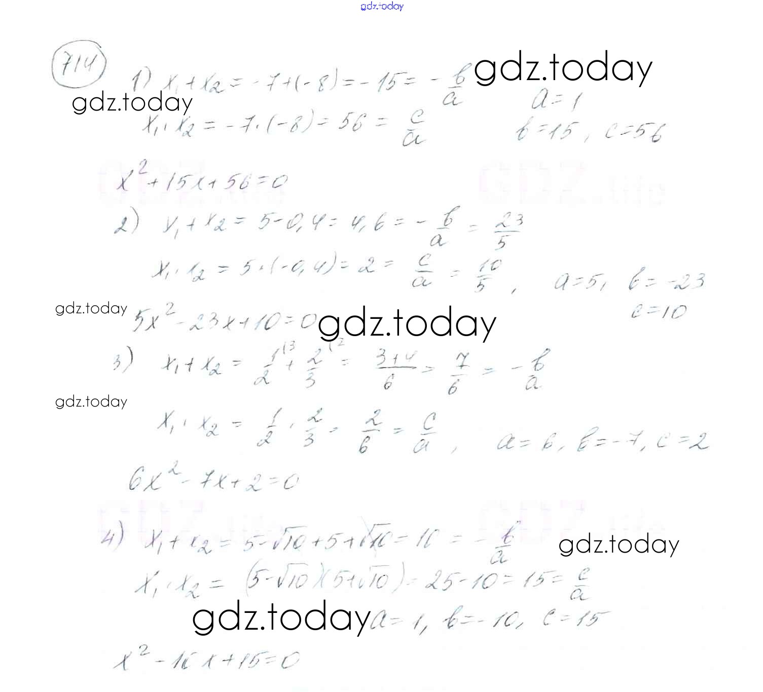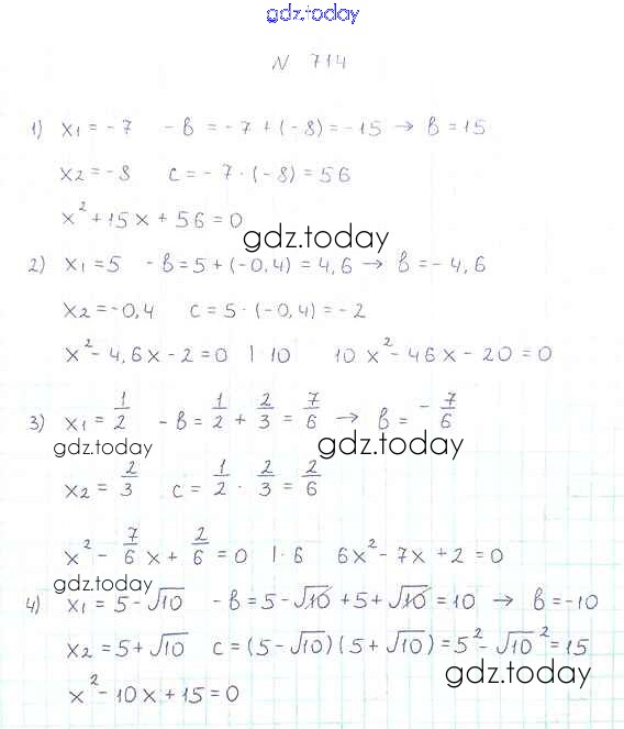 На страницах сайта gdz.today вы найдете учебный и вспомогательный материал, направленный на улучшения знаний школьной программы. ГДЗ - онлайн мир знаний §21. Теорема Виета Решение к главе 3. Квадратные уравнения 714 Учебнику по Алгебре для 8 класса Мерзляк, Полонский Вентана-граф Алгоритм успеха 2016