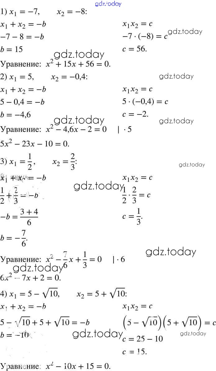 Ответы к §21. Теорема Виета Решение к главе 3. Квадратные уравнения 714 Учебнику по Алгебре для 8 класса Мерзляк, Полонский Вентана-граф Алгоритм успеха 2016