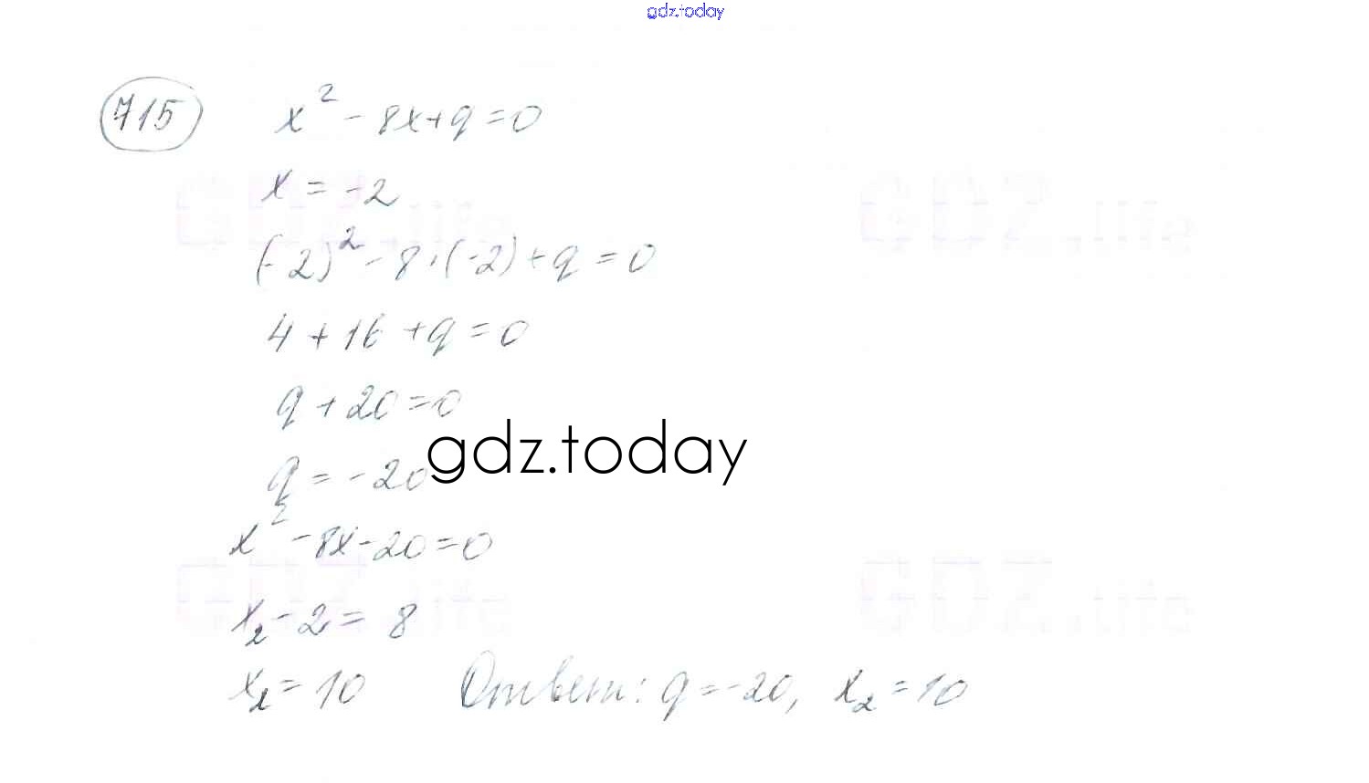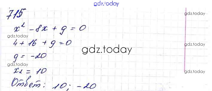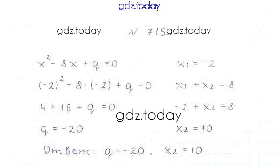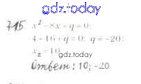 На страницах сайта gdz.today вы найдете учебный и вспомогательный материал, направленный на улучшения знаний школьной программы. ГДЗ - онлайн мир знаний §21. Теорема Виета Решение к главе 3. Квадратные уравнения 715 Учебнику по Алгебре для 8 класса Мерзляк, Полонский Вентана-граф Алгоритм успеха 2016