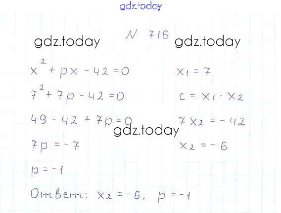 Ответы к §21. Теорема Виета Решение к главе 3. Квадратные уравнения 716 Учебнику по Алгебре для 8 класса Мерзляк, Полонский Вентана-граф Алгоритм успеха 2016
