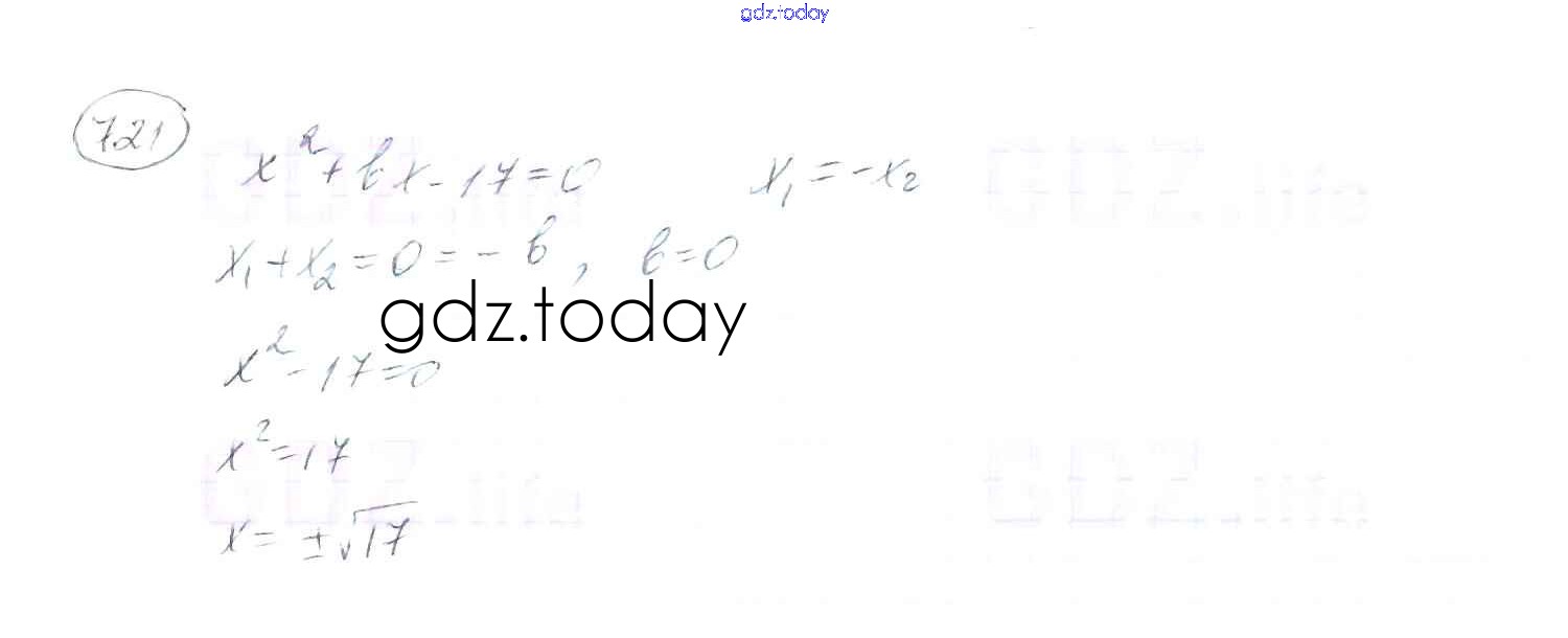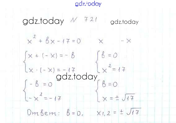 Ответы к §21. Теорема Виета Решение к главе 3. Квадратные уравнения 721 Учебнику по Алгебре для 8 класса Мерзляк, Полонский Вентана-граф Алгоритм успеха 2016