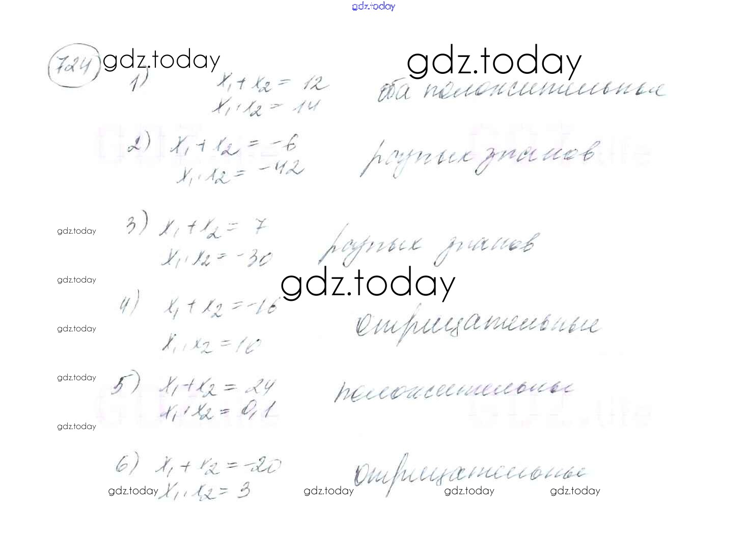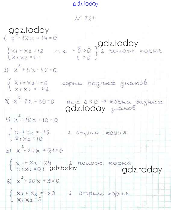 На страницах сайта gdz.today вы найдете учебный и вспомогательный материал, направленный на улучшения знаний школьной программы. ГДЗ - онлайн мир знаний §21. Теорема Виета Решение к главе 3. Квадратные уравнения 724 Учебнику по Алгебре для 8 класса Мерзляк, Полонский Вентана-граф Алгоритм успеха 2016