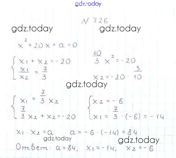 На страницах сайта gdz.today вы найдете учебный и вспомогательный материал, направленный на улучшения знаний школьной программы. ГДЗ - онлайн мир знаний §21. Теорема Виета Решение к главе 3. Квадратные уравнения 726 Учебнику по Алгебре для 8 класса Мерзляк, Полонский Вентана-граф Алгоритм успеха 2016