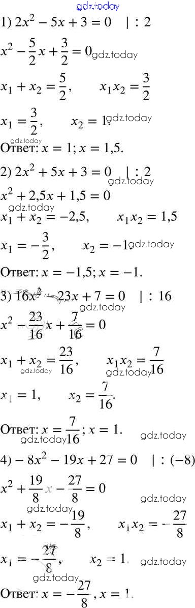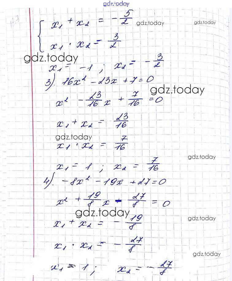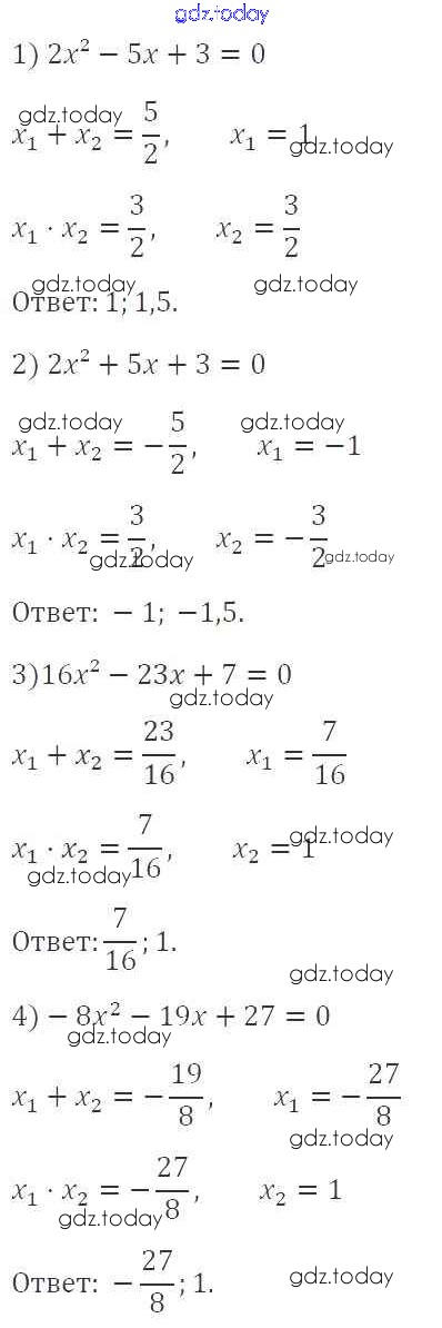 Ответы к §21. Теорема Виета Решение к главе 3. Квадратные уравнения 729 Учебнику по Алгебре для 8 класса Мерзляк, Полонский Вентана-граф Алгоритм успеха 2016