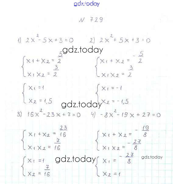 На страницах сайта gdz.today вы найдете учебный и вспомогательный материал, направленный на улучшения знаний школьной программы. ГДЗ - онлайн мир знаний §21. Теорема Виета Решение к главе 3. Квадратные уравнения 729 Учебнику по Алгебре для 8 класса Мерзляк, Полонский Вентана-граф Алгоритм успеха 2016