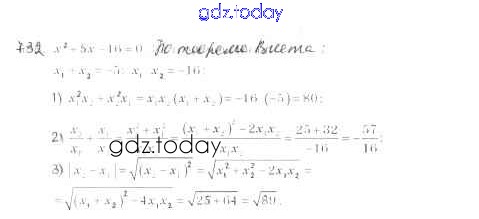 Ответы к §21. Теорема Виета Решение к главе 3. Квадратные уравнения 732 Учебнику по Алгебре для 8 класса Мерзляк, Полонский Вентана-граф Алгоритм успеха 2016