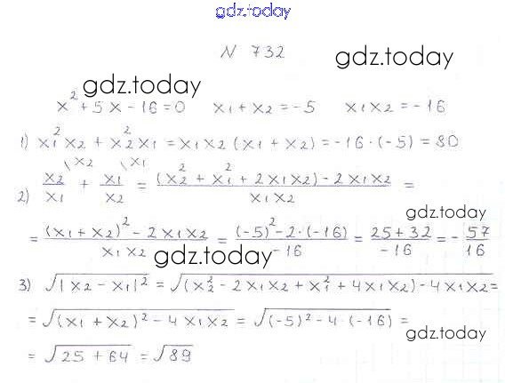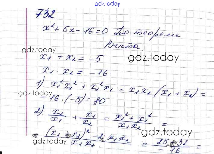 На страницах сайта gdz.today вы найдете учебный и вспомогательный материал, направленный на улучшения знаний школьной программы. ГДЗ - онлайн мир знаний §21. Теорема Виета Решение к главе 3. Квадратные уравнения 732 Учебнику по Алгебре для 8 класса Мерзляк, Полонский Вентана-граф Алгоритм успеха 2016