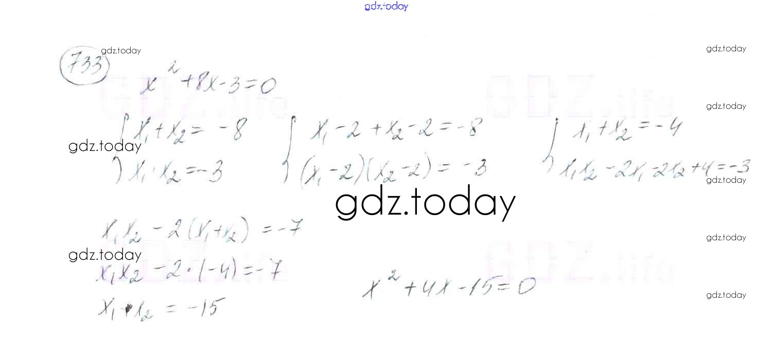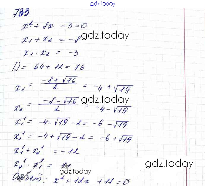 На страницах сайта gdz.today вы найдете учебный и вспомогательный материал, направленный на улучшения знаний школьной программы. ГДЗ - онлайн мир знаний §21. Теорема Виета Решение к главе 3. Квадратные уравнения 733 Учебнику по Алгебре для 8 класса Мерзляк, Полонский Вентана-граф Алгоритм успеха 2016