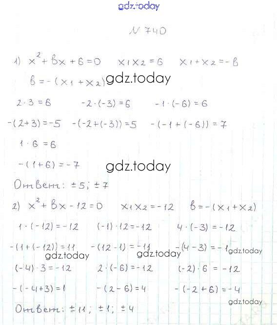На страницах сайта gdz.today вы найдете учебный и вспомогательный материал, направленный на улучшения знаний школьной программы. ГДЗ - онлайн мир знаний §21. Теорема Виета Решение к главе 3. Квадратные уравнения 740 Учебнику по Алгебре для 8 класса Мерзляк, Полонский Вентана-граф Алгоритм успеха 2016